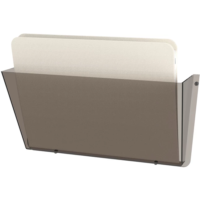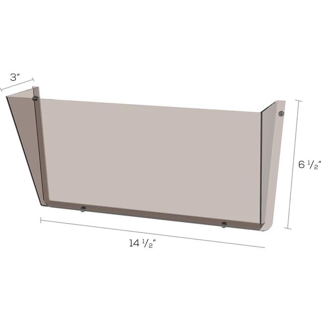 Deflecto Letter Size Unbreakable Docupocket measuring 14-1/2 in x 3 in x 6-1/2 in is great for holding important documents, file folders, magazines and more. Smoke wall pocket mounts easily with included tape and screws. Recyclable wall pocket is made of strong, unbreakable plastic.