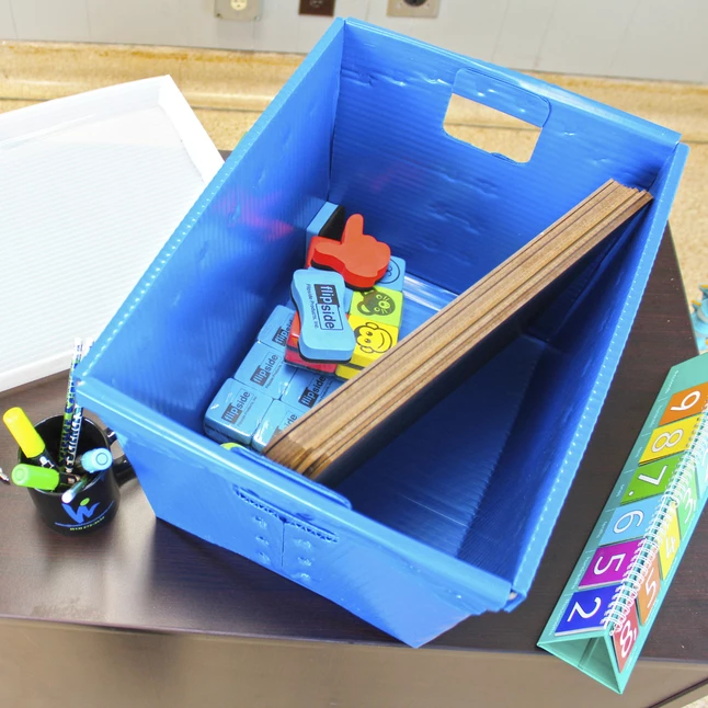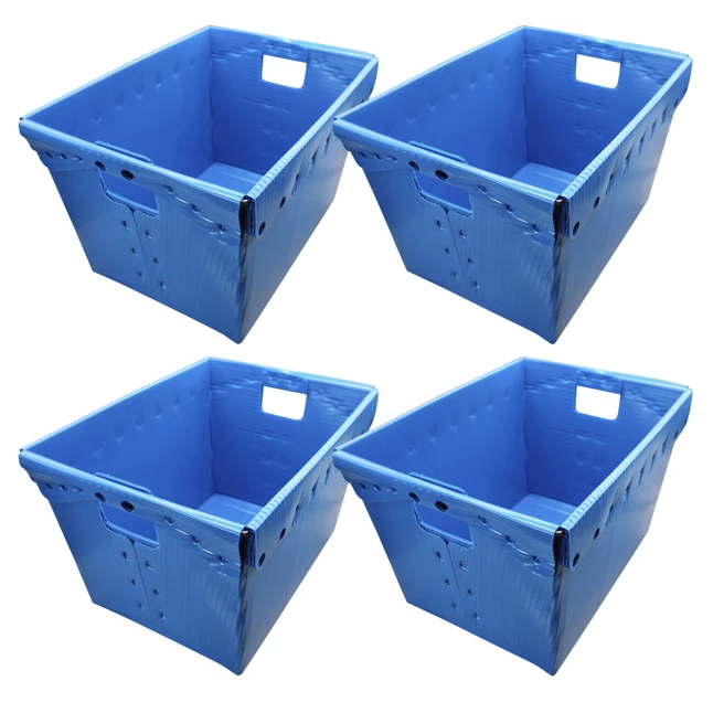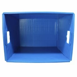Corrugated Plastic Storage Postal Totes are an 11 US gallons rugged utility tote. For added strength and rigidity, the totes are reinforced with a wire rim and are sonically welded at key stress points. Wrapped hand holes make for easier handling. Shipped pre-assembled. Lid available and sold separately. The totes measure 18.25 x 13.25 x 11.6 inches.