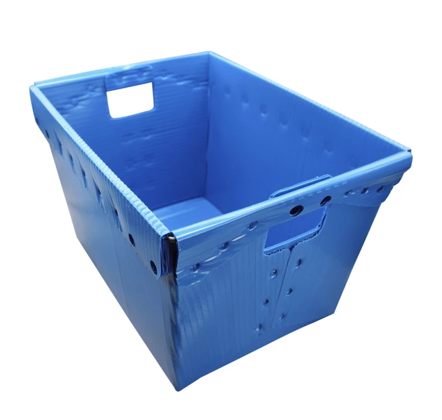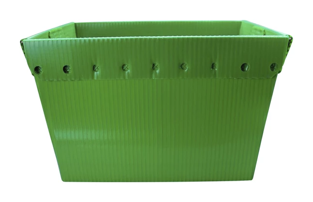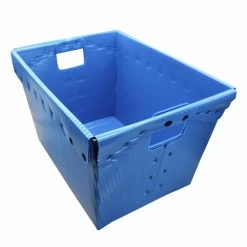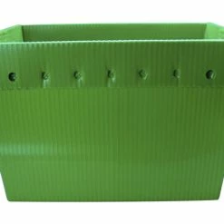 Corrugated Plastic Storage Postal Totes are an 11 US gallons rugged utility tote. For added strength and rigidity, the totes are reinforced with a wire rim and are sonically welded at key stress points. Wrapped hand holes make for easier handling. Shipped pre-assembled. Lid available and sold separately. The totes measure 18.25 x 13.25 x 11.6 inches.