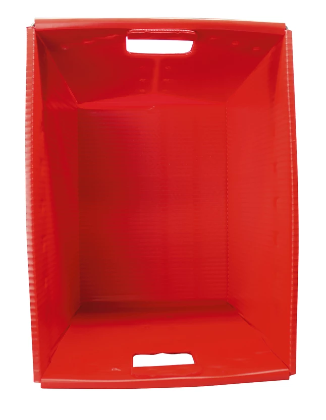 Corrugated Plastic Storage Postal Totes are an 11 US gallons rugged utility tote. For added strength and rigidity, the totes are reinforced with a wire rim and are sonically welded at key stress points. Wrapped hand holes make for easier handling. Shipped pre-assembled. Lid available and sold separately. The totes measure 18.25 x 13.25 x 11.6 inches.