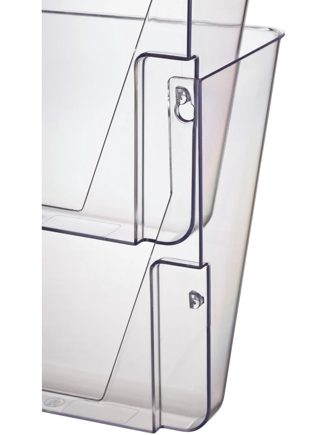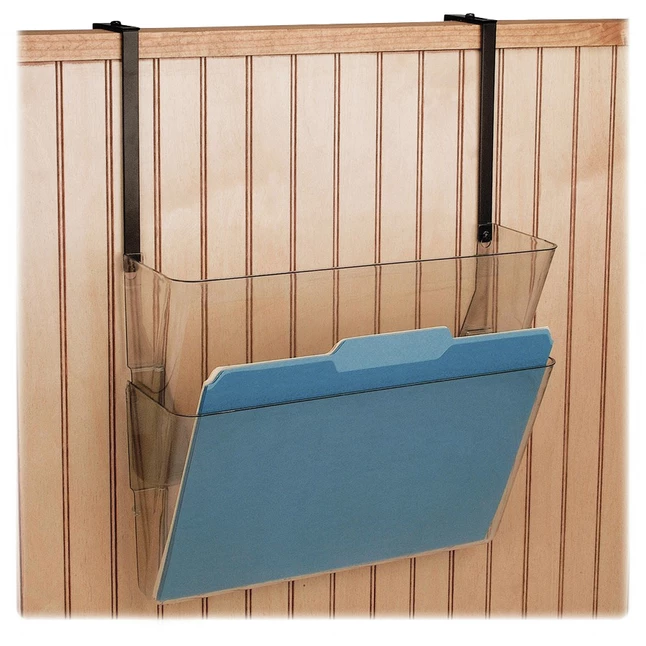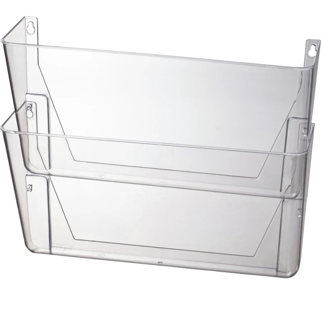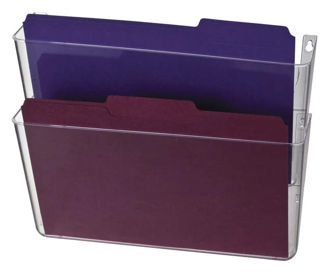 Officemate Letter-Size Wall File measuring 13 in x 4-1/8 in x 10-5/8 in easily mounts on walls and partitions. Clear file is a space-saving filing system that includes double-sided tape and mounting screws.