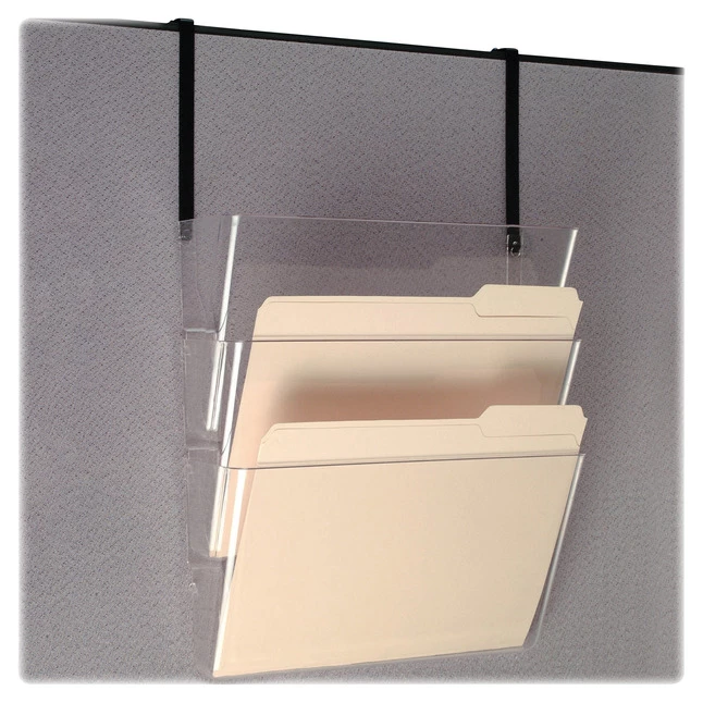 Officemate Letter-Size Wall File measuring 13 in x 4-1/8 in x 7 in easily mounts on walls and partitions. Clear file is a space-saving filing system that includes double-sided tape and mounting screws.