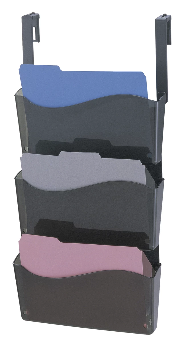 Officemate Unbreakable Wall Files with Hanger Set measuring 13-3/4 in x 3 in x 19-1/2 in can accommodate invoice, letter/A4 and legal-size documents. Smoke wall file made of unbreakable plastic is sold as 3 per pack.