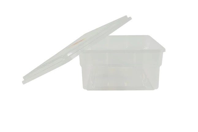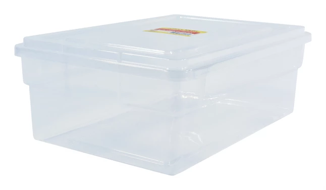 - Storage tote with lid provides organization for school supplies, toys, paperwork, and other items