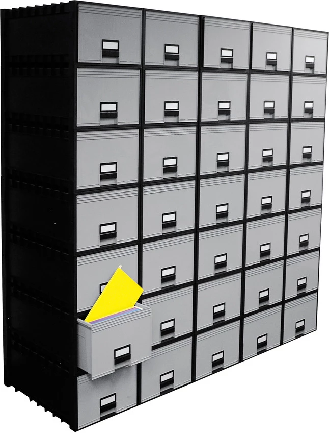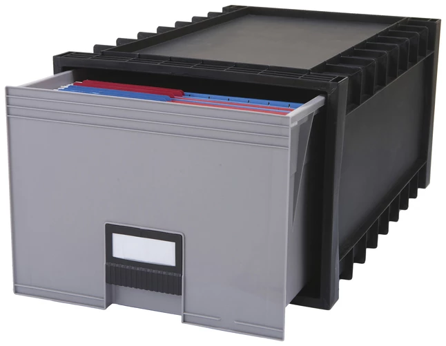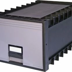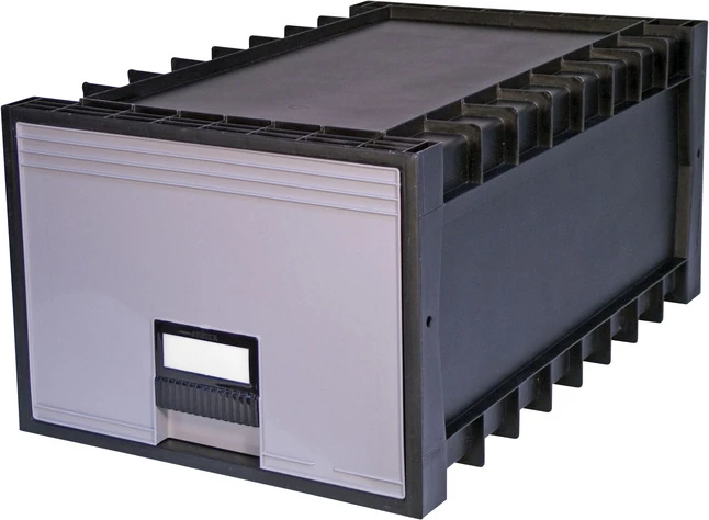 Rugged and reliable, this plastic archive box is designed with functionality in mind. Deep drawer holds letter-size folders. Boxes feature insert tabs to let you safely stack them up to 10 units tall. Durable construction is lightweight and mobile.