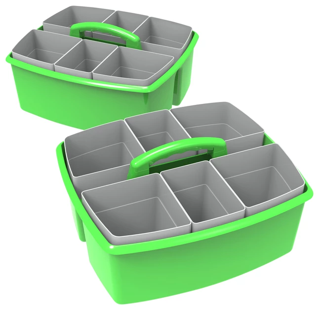 - Caddy organizer with 2 deep compartments lends a simple storage solution in classrooms, childcare center, or home