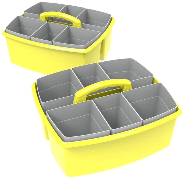 - Caddy organizer with 2 deep compartments lends a simple storage solution in classrooms, childcare center, or home