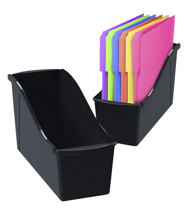 Keep your books organized and within easy reach. Link our book bins together to make a sturdy book storage or use the easy to grip handles to carry a set of books to your reading corner. The handles are perfectly sized for big and small hands. The interior depth is 12 inches so it will fit taller books and letter sized file folder too. Bright colors are ideal for STEM or STEAM organization. Colors may vary.