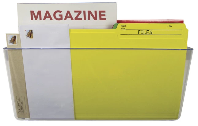 Storex Magnetic Wall File Pockets enhance the storage of any metal desk or filing cabinet. Extra-strong, heavy-duty magnets hold up to 5 lb. of weight to eliminate the need for drilling or adhesives. The back wall ensures that no paper – big or small – will slip between the cracks. Large, open-top design fits letter-size and legal-size papers and folders. Plastic material is free from PVC and BPA for safe, long-term use.