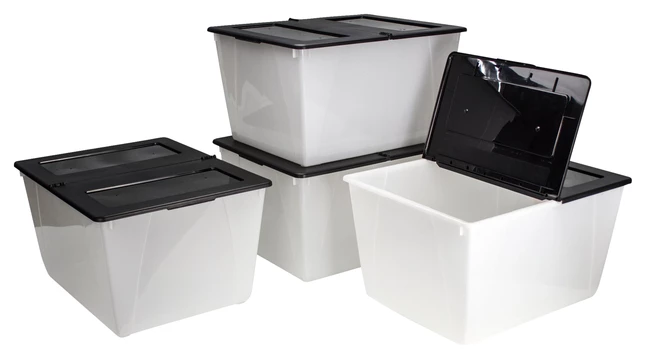 New ๐ฅ Storex Storage Bin, 16 Gallon, Clear With Black Lid, Pack Of 4 ๐