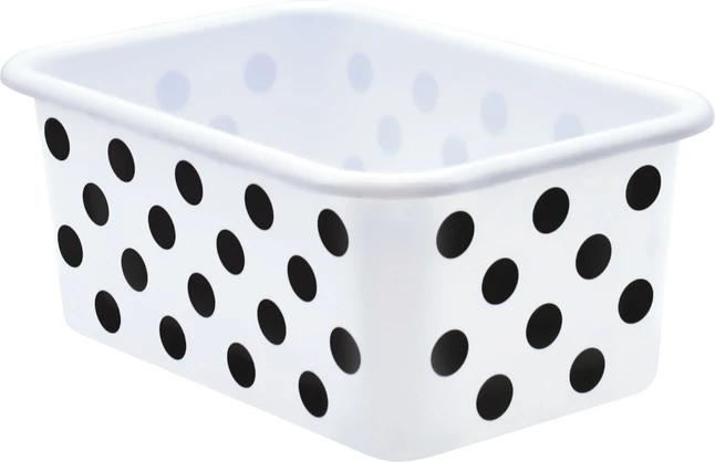 Outlet ⌛ Teacher Created Resources Black Polka Dots On White Small Plastic Storage Bin ❤️