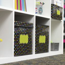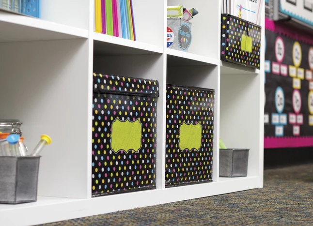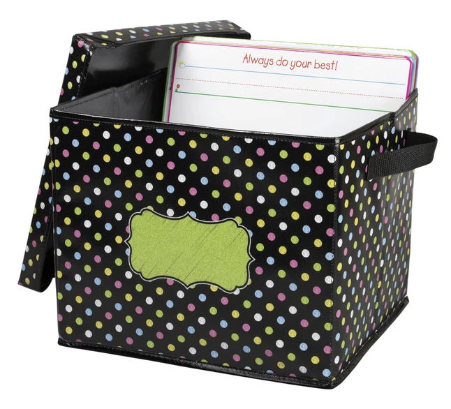 Classroom organization is easy with these decorative storage boxes and bins. Keep manipulatives, books, notepads, educational toys, games, and supplies in these decorative organizers that feature a write-on/wipe-off surface for convenient labeling and easy cleaning. The durable bins can also be folded for easy storage so you can take them out and use them year after year.